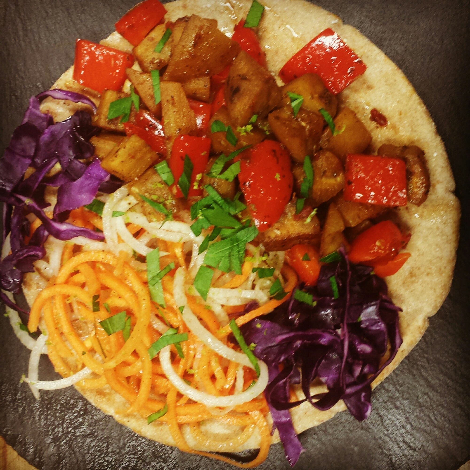 To serve : Wraps , Red cabbage , sprinkle of Parsley