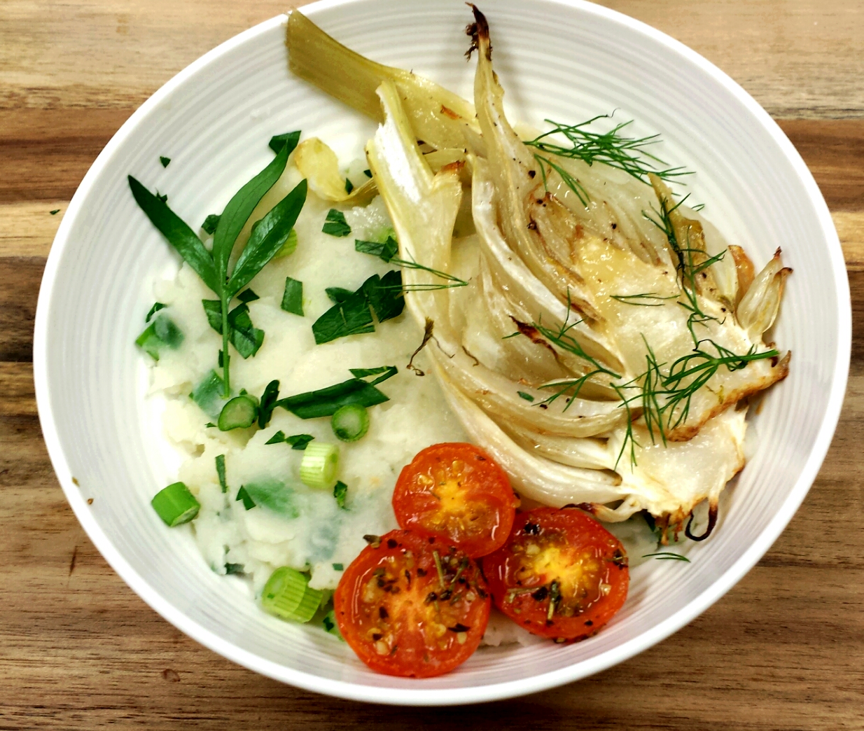 Today was a long day. And when I finally pulled round for food, I wanted something simple and comforting. And nothing is simpler or more comforting than mashed potatoes. They have always been one of my all time favourite foods … Swoon. I love topping mash with all sorts of goodies. From Garlic Mushrooms to caremelised onions. But today’s go to had method in my madness. I was using Fennel . Fennel , you may not know , is a bit of a hero of mine. This little bulb has a natural antihistamine and a natural anti inflammatory properties. It’s also good anti oxidant. All of which I was in need of this evening. And this recipe never fails. I love roasted Fennel. I love raw Fennel. Basically if there was a fennel fan club I’d have the tshirt. And tonight it didn’t disappoint.